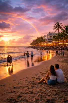 Langit setelah hujan selalu menyimpan pesona yang sulit untuk diabaikan. Setelah seharian diguyur hujan, suasana berubah menjadi lebih tenang dan segar. Di kawasan Pantai Discovery Mall Bali, momen ini terasa semakin istimewa karena perpaduan antara laut, langit, dan cahaya matahari yang perlahan kembali muncul.