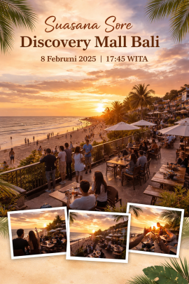Sore hari selalu punya cara sendiri untuk membuat suasana terasa lebih hangat. Pada tanggal 8 Februari 2025, tepat pukul 17:45 WITA, kawasan Discovery Mall Bali dipenuhi nuansa senja yang begitu memikat.