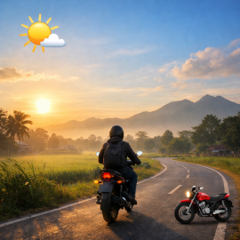 Ketika motor mulai melaju perlahan, perjalanan bukan hanya sekadar berpindah tempat. Dalam konteks pagi cerah harapan, perjalanan ini menjadi simbol langkah awal menuju tujuan hidup. Jalanan yang masih lengang serta udara segar memberikan pengalaman yang berbeda dibandingkan waktu lainnya.