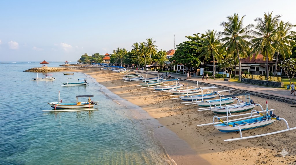 Pantai Sindhu di kawasan Sanur menjadi salah satu destinasi yang cocok untuk menikmati suasana santai di Bali. Pantai ini dikenal dengan ombaknya yang tenang dan lingkungan yang tertata rapi, sehingga nyaman untuk berbagai aktivitas.
