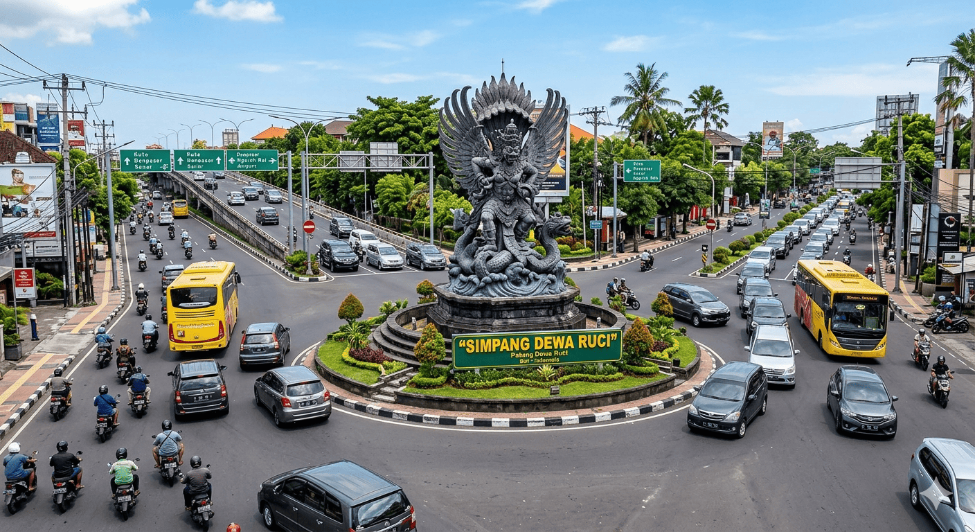 Simpang Dewa Ruci Bali menjadi salah satu titik penting di Pulau Dewata. Banyak orang mengenalnya sebagai “Simpang Siur”. Namun, nama resminya diambil dari patung besar yang berdiri di tengah bundaran.