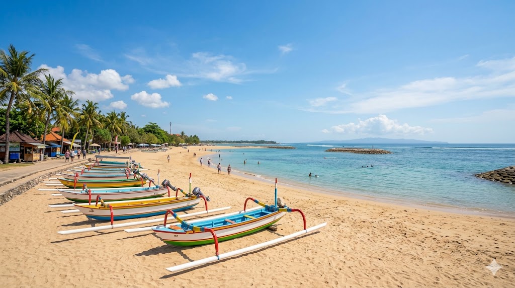 Pantai Segara Ayu di kawasan Sanur menjadi salah satu destinasi favorit untuk menikmati suasana pagi di Bali. Pantai ini terkenal dengan pemandangan sunrise yang indah serta suasana yang tenang dan nyaman.
