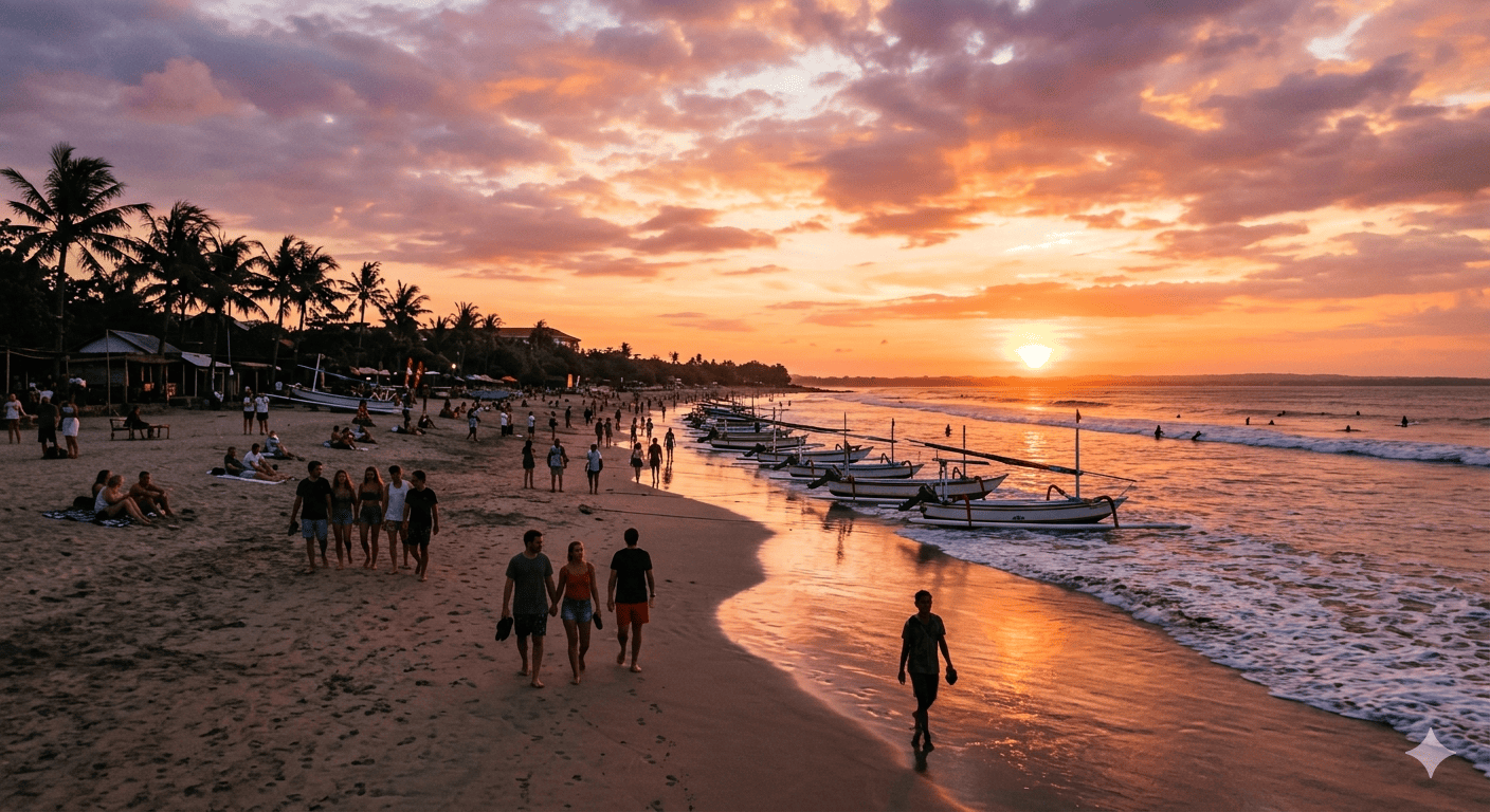 Pada akhirnya, hal yang membuat sunset di Kuta terasa spesial adalah kombinasi antara keindahan alam dan suasana yang hidup. Mulai dari pasangan yang berjalan di tepi pantai hingga fotografer yang mengabadikan momen, semuanya menyatu dalam satu pengalaman yang tak terlupakan. Oleh karena itu, Sunset Kuta Bali indah tetap menjadi pilihan favorit bagi siapa saja yang ingin menikmati keindahan senja tanpa perlu usaha berlebihan.