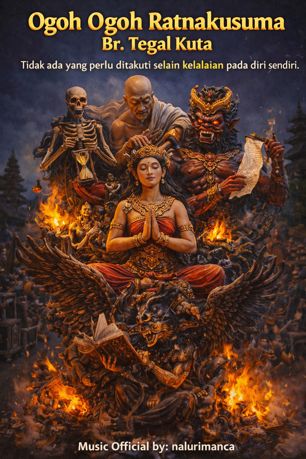 Ogoh ogoh Ratnakusuma dari Banjar Tegal Kuta menjadi salah satu karya yang menarik perhatian dalam perayaan budaya tahun ini. Tidak hanya menampilkan visual yang kuat dan artistik, karya ini juga menghadirkan pesan mendalam tentang kehidupan manusia.Dengan detail yang rumit dan ekspresi yang penuh karakter, ogoh ogoh ini mencerminkan perjalanan jiwa manusia. Setiap elemen dalam bentuknya seolah menggambarkan pergulatan batin yang dialami oleh setiap individu dalam menjalani kehidupan sehari-hari.