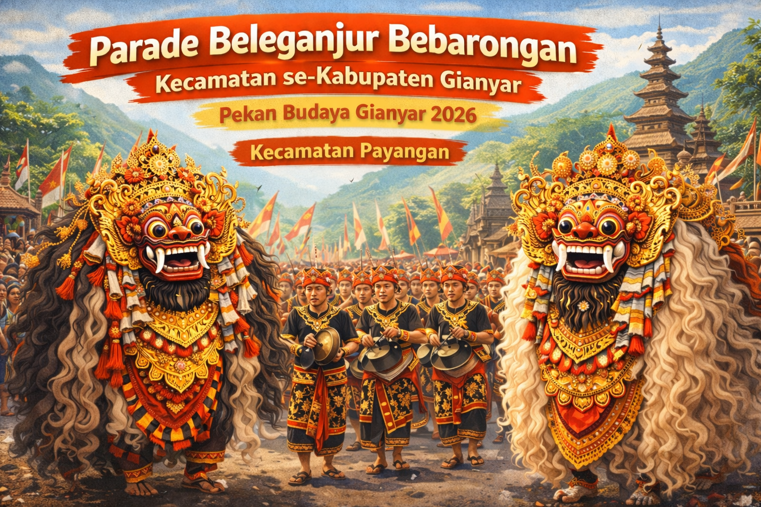 Parade beleganjur bebarongan kembali menjadi sorotan dalam rangkaian Pekan Budaya Gianyar 2026, yang kali ini digelar di Kecamatan Payangan. Acara ini menghadirkan berbagai sekaa dari seluruh kecamatan di Kabupaten Gianyar, dengan penampilan yang memukau serta penuh semangat budaya.Sejak pagi hari, suasana Payangan sudah dipenuhi oleh peserta dan penonton yang datang untuk menyaksikan parade. Iringan gamelan beleganjur yang energik berpadu dengan kehadiran barong menciptakan nuansa yang sakral sekaligus meriah. Hal ini menjadikan acara tersebut tidak hanya sebagai hiburan, tetapi juga sebagai bentuk nyata pelestarian budaya Bali.