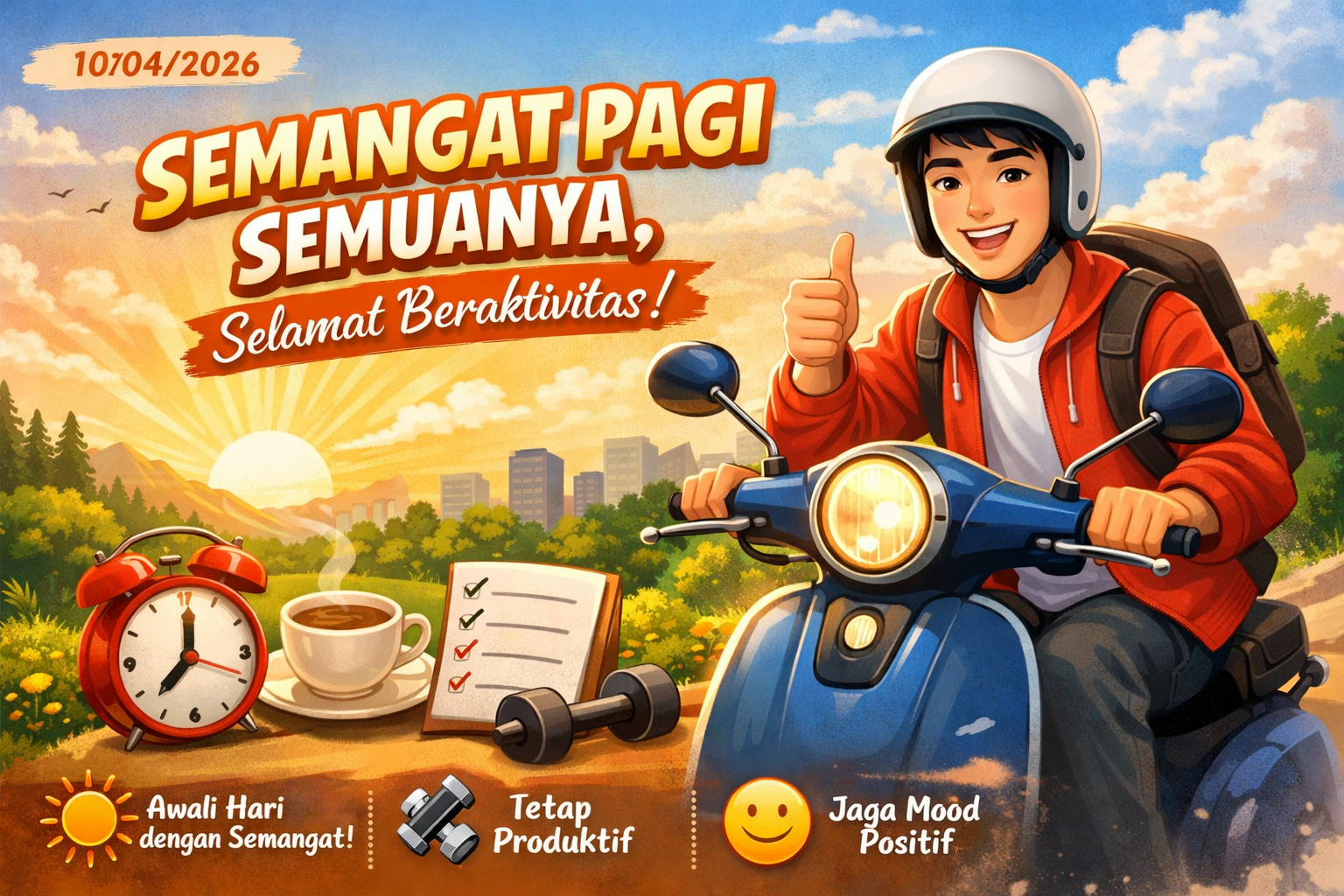 Semangat pagi semua hari menjadi kunci penting untuk membuka hari dengan energi yang positif. Pada tanggal 10 April 2026, suasana pagi terasa begitu segar dan penuh harapan. Banyak orang memulai hari mereka dengan rutinitas yang sederhana, seperti bangun lebih awal, menikmati udara segar, hingga bersiap menjalani aktivitas harian dengan penuh motivasi.Memulai pagi dengan sikap positif dapat memberikan dampak besar terhadap produktivitas. Selain itu, kebiasaan kecil seperti merapikan tempat tidur atau sarapan sehat juga mampu meningkatkan fokus dan kesiapan mental. Oleh karena itu, penting untuk menjaga konsistensi agar energi positif tetap terjaga setiap hari.