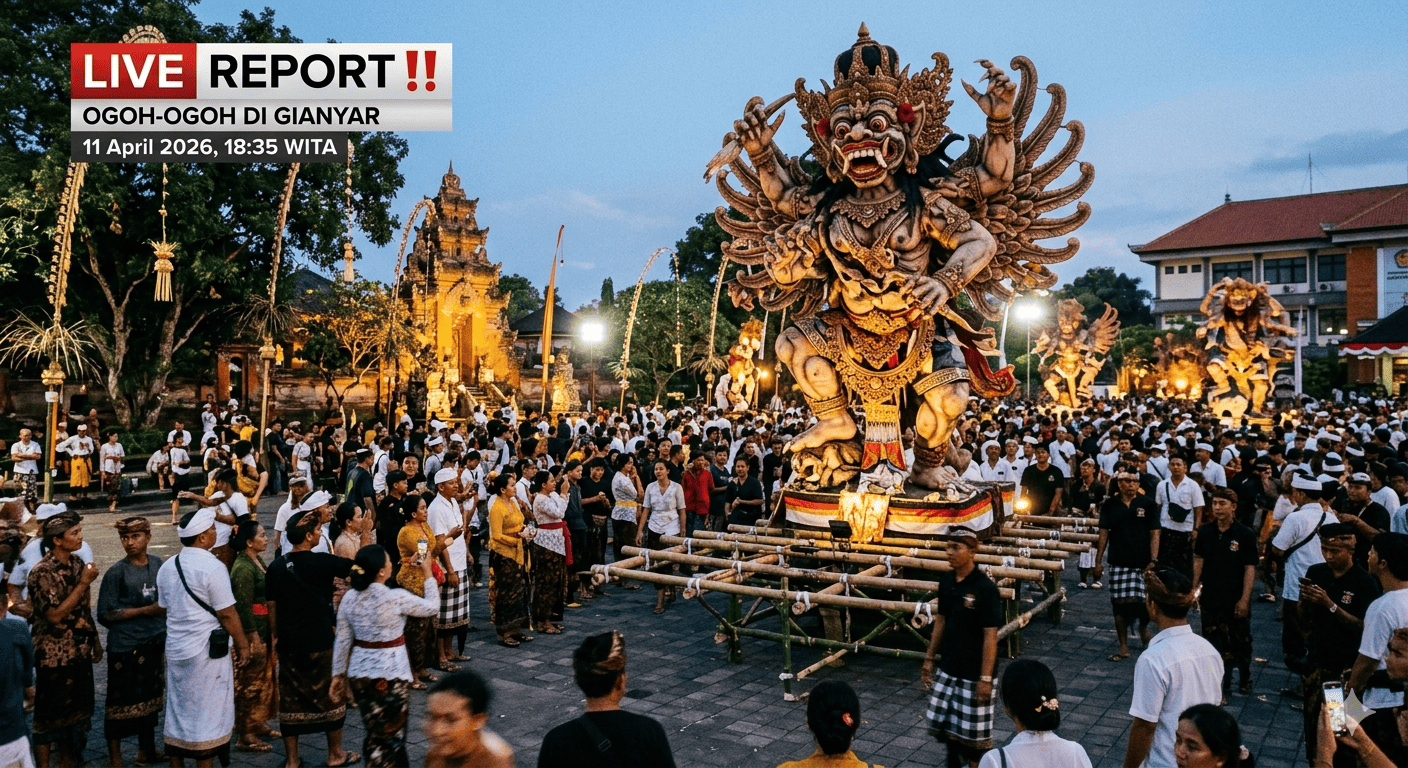 Pada tanggal 11 April 2026, suasana di pusat Gianyar dipenuhi oleh kemeriahan budaya yang begitu terasa. Melalui live report ogoh ogoh, terlihat sejumlah karya ogoh-ogoh dari berbagai banjar sudah mulai berdatangan dan menempati area alun-alun kota. Masyarakat lokal hingga wisatawan tampak antusias menyaksikan setiap detail karya yang dipamerkan.