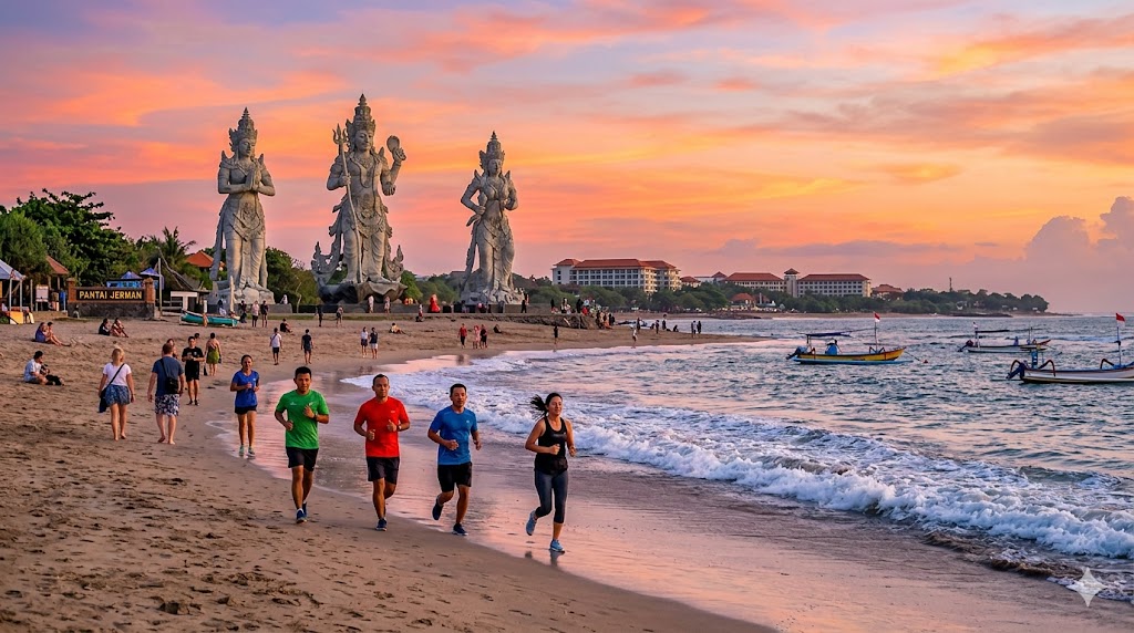 Pantai Jerman di Bali menjadi salah satu spot menarik untuk aktivitas jogging di pagi atau sore hari. Pantai ini menawarkan suasana yang lebih tenang dibandingkan pantai di sekitarnya, dengan jalur tepi pantai yang nyaman untuk bergerak santai sambil menikmati pemandangan laut.