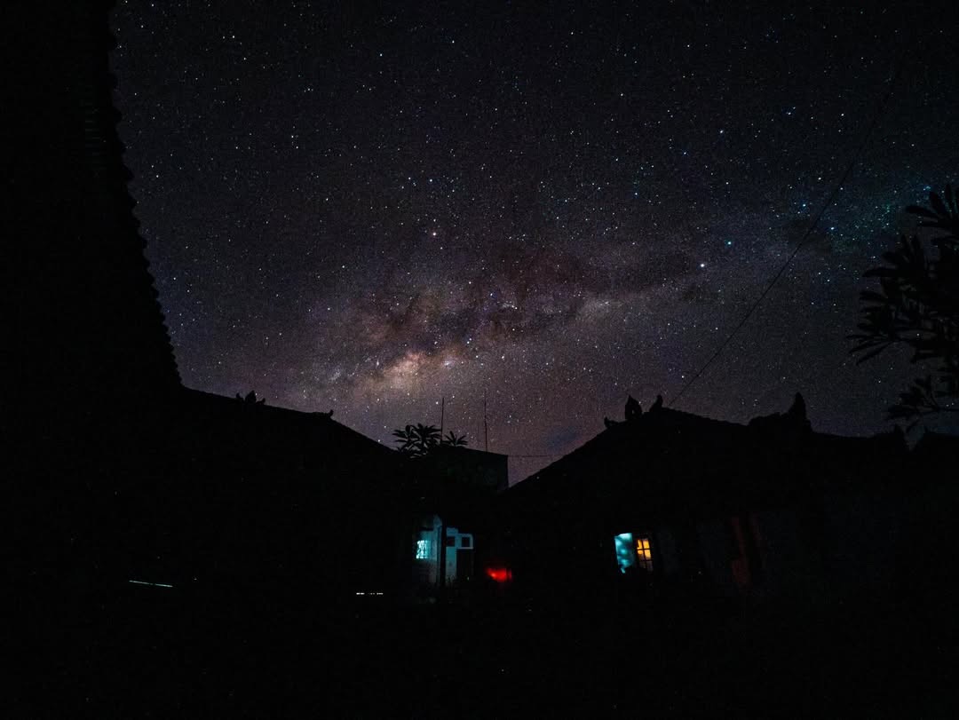 Tanpa adanya polusi cahaya, langit malam terlihat jauh lebih bersih dan dipenuhi bintang. Pemandangan ini memberikan kesan bahwa alam sedang menunjukkan sisi terbaiknya.