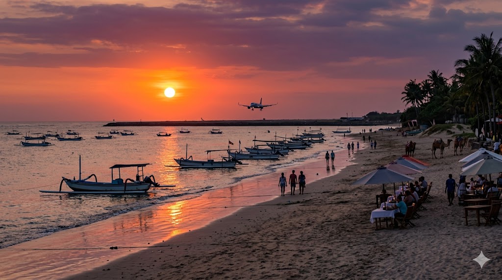 Pantai Kelan di Tuban, Badung, Bali semakin dikenal sebagai salah satu spot favorit untuk menikmati sunset. Pantai ini menawarkan pemandangan matahari terbenam yang indah sekaligus pengalaman unik melihat pesawat yang melintas di dekat area pantai.