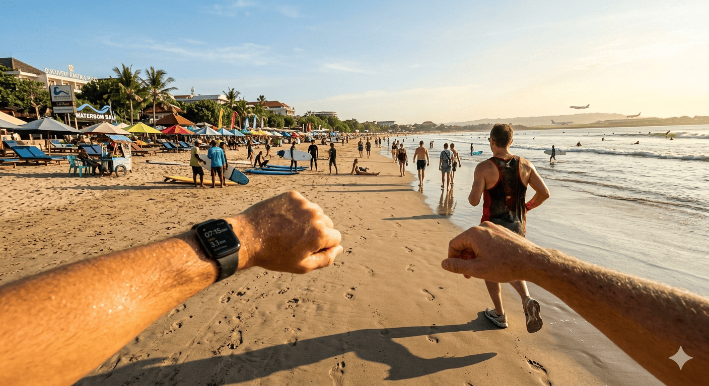 Jogging telat pantai kuta ternyata punya sensasi yang berbeda dibandingkan jogging pagi buta. Saat matahari sudah mulai naik dan aktivitas di sekitar pantai semakin hidup, suasana justru terasa lebih dinamis dan penuh energi. Bagi sebagian orang, ini mungkin bukan waktu ideal, tapi justru di situlah letak keunikannya.