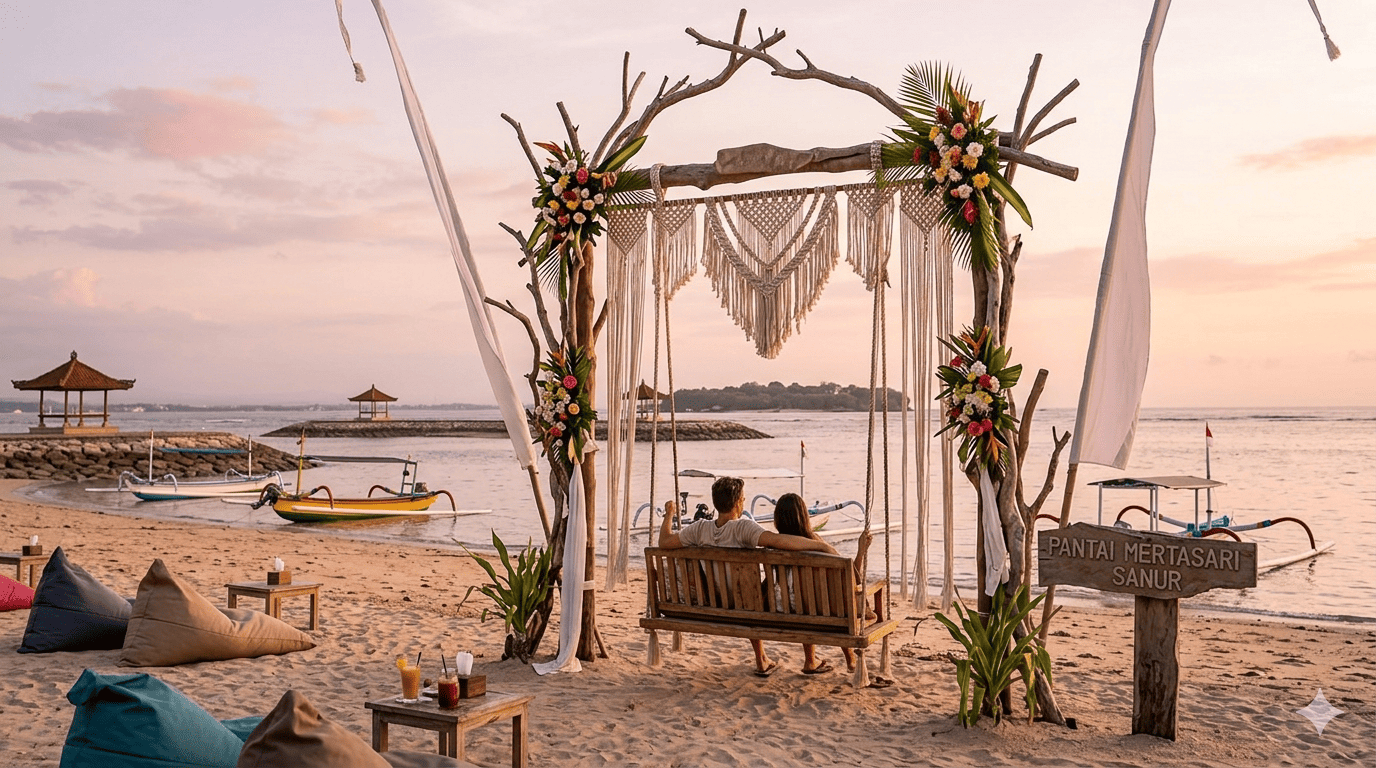 Spot estetik pantai mertasari menjadi salah satu lokasi favorit bagi pecinta fotografi dan pemburu konten Instagram di kawasan Sanur, Bali. Pantai ini menawarkan suasana yang lebih tenang dibandingkan pantai lain di Bali, sehingga sangat cocok untuk menghasilkan foto yang bersih, aesthetic, dan tidak terlalu ramai.
