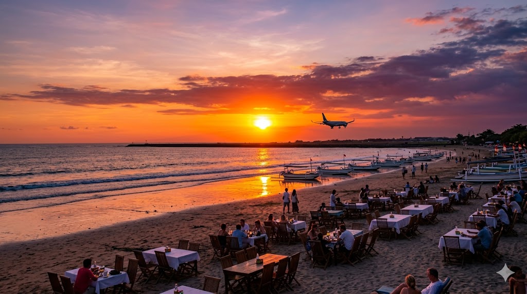 Pantai Kelan di kawasan Tuban, Badung, Bali dikenal sebagai salah satu spot favorit untuk menikmati suasana sore. Semakin mendekati waktu sunset, jumlah pengunjung biasanya terus bertambah.