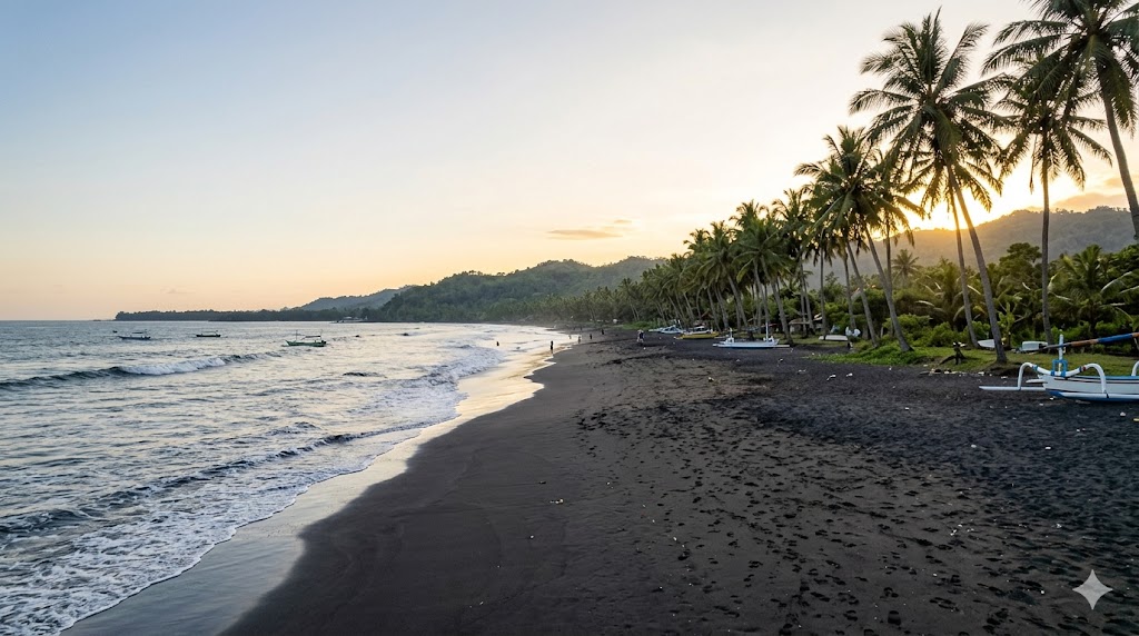 Pasir hitam di area pantai juga memberikan kontras yang unik dengan warna langit dan laut. Hasil foto terlihat lebih dramatis tanpa perlu banyak edit.