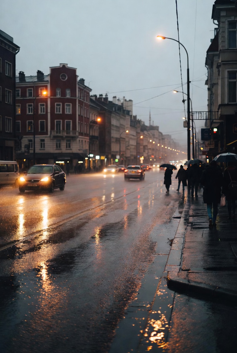 Gerimis membuat suasana sedikit lebih padat karena kendaraan cenderung bergerak lebih hati-hati.