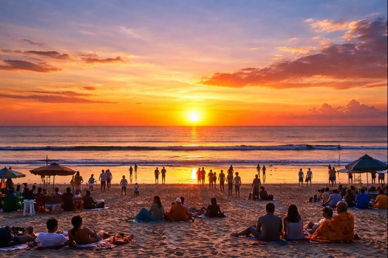 Pantai Kuta dan Pantai Legian menjadi pilihan favorit untuk menikmati matahari terbenam dengan panorama laut yang luas.